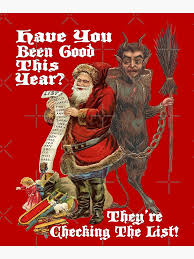 Do you remember the song “Santa Claus Is Comin’ To Town”? It talks about the kids being on the “naughty and nice list.” Well guess what? Krampus (the modern day elf) accompanied Santa and the things he would do are at bit alarming. He would punish the naughty ones or scare them into being good. Some legends say he would stuff the naughty kids into a basket and carry them to the underworld. “You better watch out, you better not cry!” This song takes on a different meaning when you have the backdrop.
